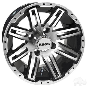 Set of (4) RHOX RX265 12" Machined Black Golf Cart Wheels - Choose Tire Combo