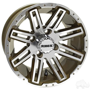 Set of (4) RHOX RX265 12" Machined Bronze Golf Cart Wheels - Choose Tire Combo