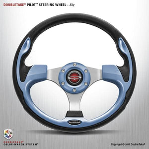 Sky Blue Doubletake Pilot Golf Cart Steering Wheel and Adapter